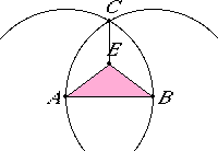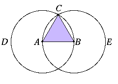 Describe the circle BCD with center A and radius AB. Again describe the circle ACE with center B and radius BA. Join the straight lines CA and CB from the point C at which the circles cut one another to the points A and B. | |