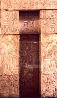 "False doors", also known as "Ka doors" as they allowed the Ka (an element of the "soul") to pass through them, were common in mortuary temples and tombs from around the Third Dynasty and temples of the New Kingdom. The false door was thought to be a threshold between the world of mortals and the world of deities and spirits. The deity or the deceased could interact with the world of the living either by passing through the door or receiving offerings though it. As a result it was not uncommon to find false doors depicted on the sides of coffins as well as on the cabinets of "shawabti" ( or "ushabti" - magical servants).